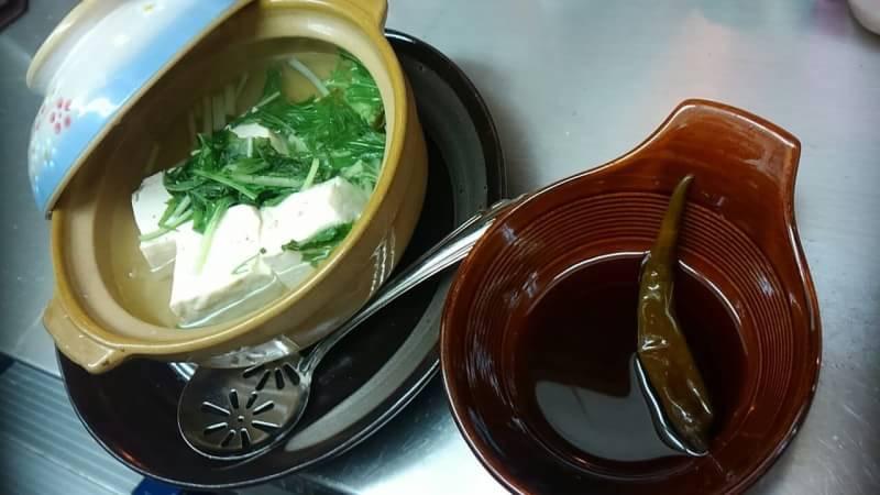 *湯豆腐、青唐辛子のピリ辛薬味入